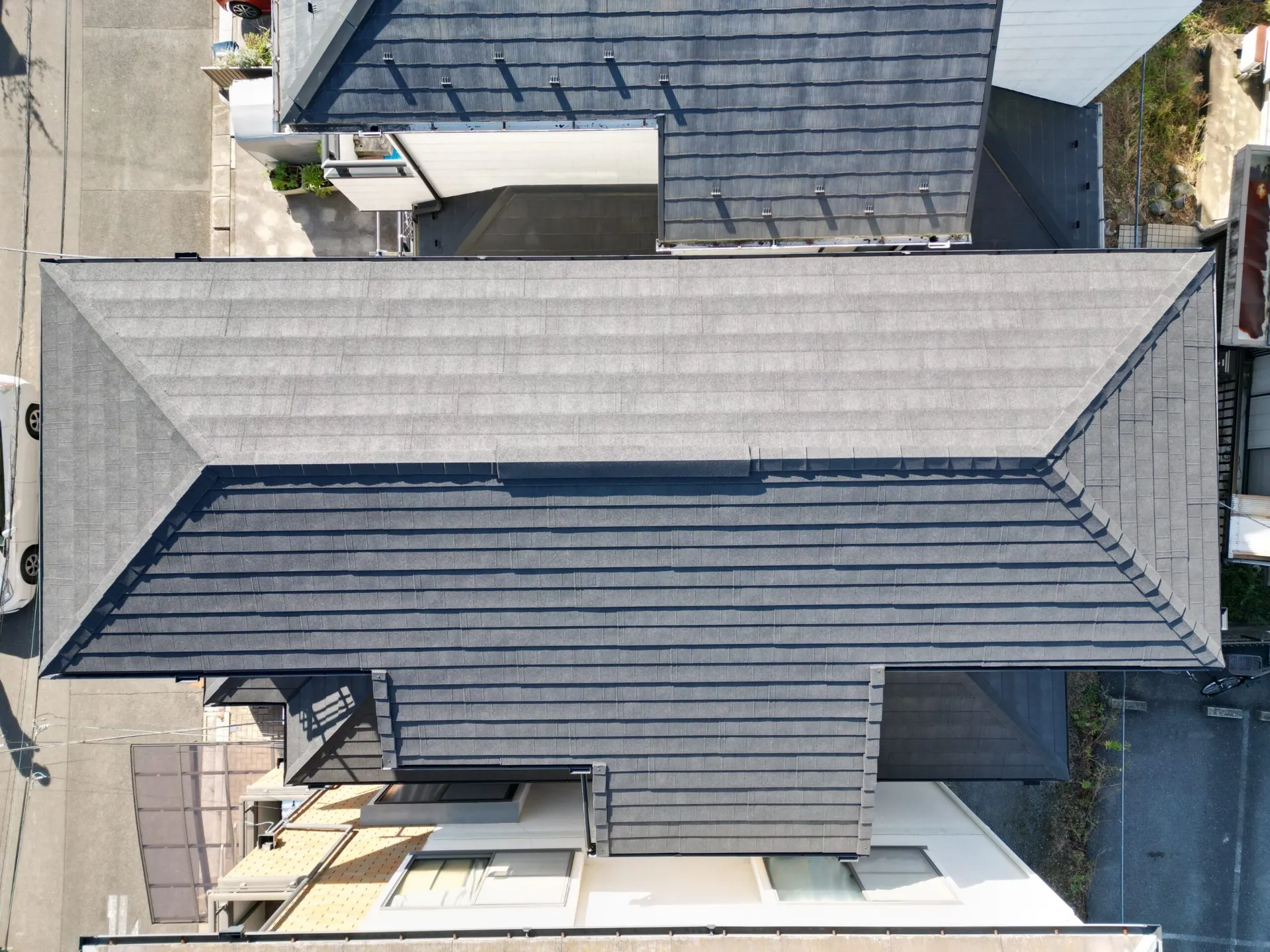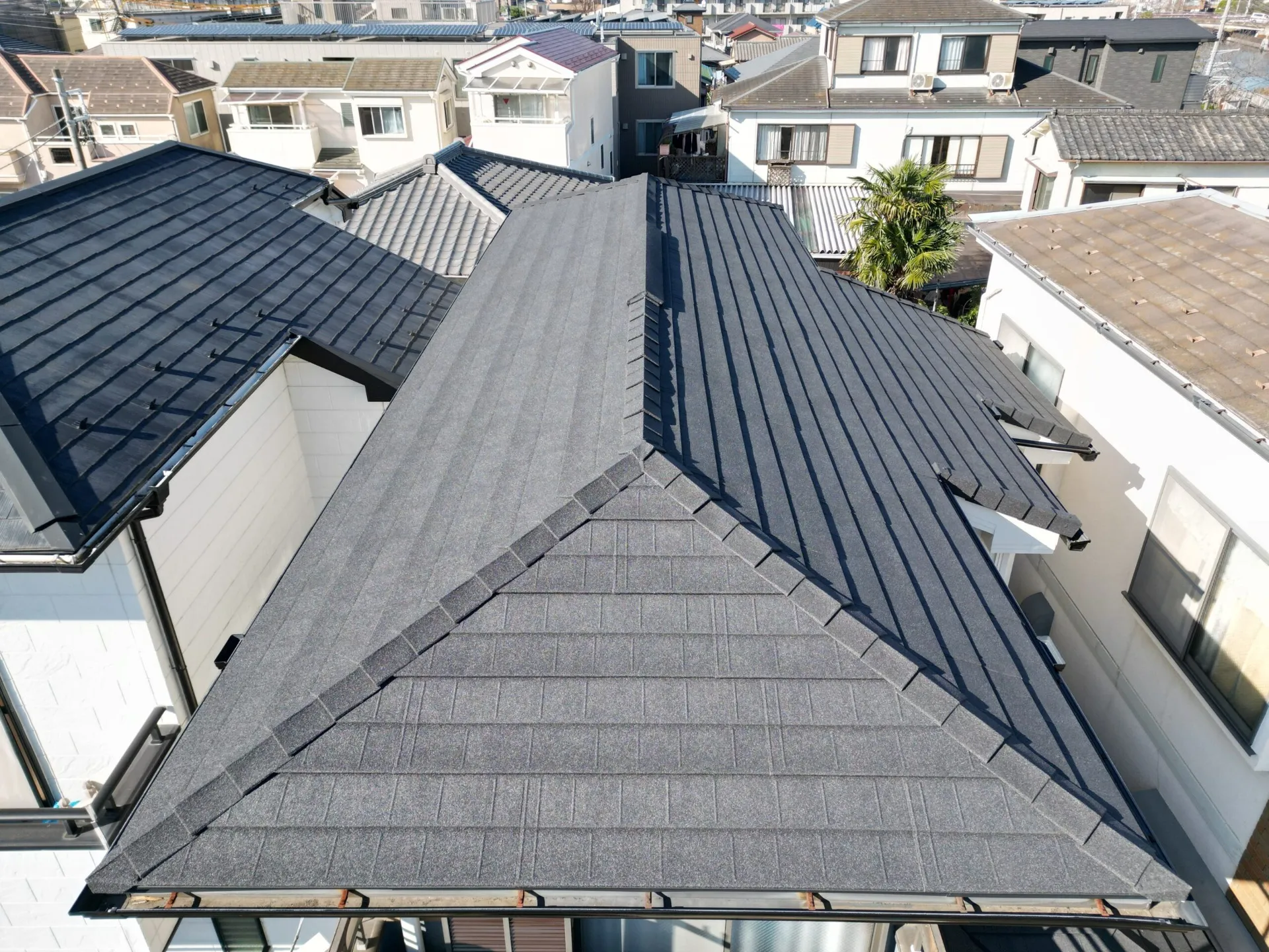 本日、スタッフ日記に投稿する屋根材の商品説明(ディーズルーフィングディプロマットスター)は江戸川区I様邸で使用しました。